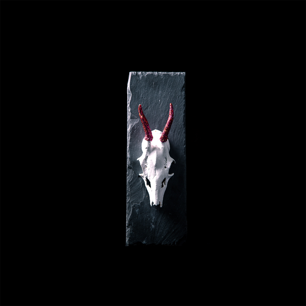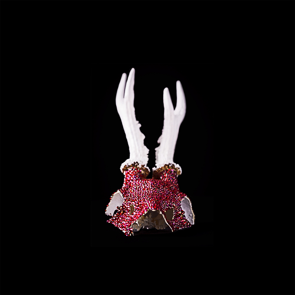 Hörner und Innenseite des Kopfes weiß lackiert | Swarovskisteine Ruby & Indian Pink